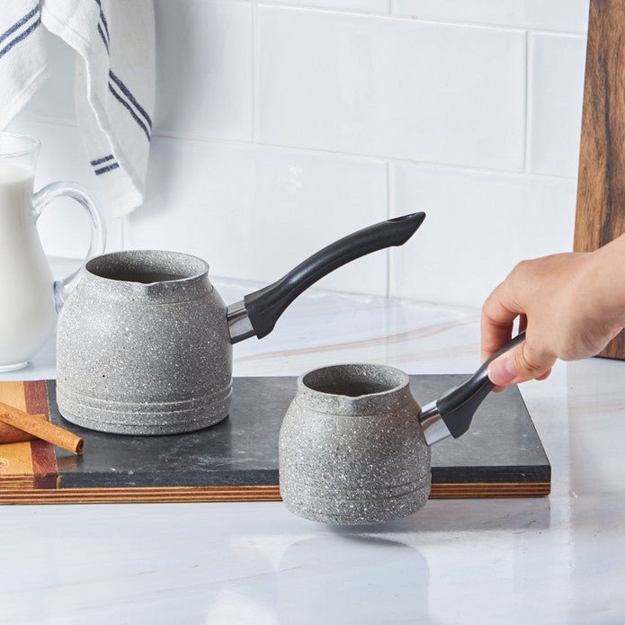 Whether you're savoring a quiet morning moment or sharing a coffee break with a friend, the Karaca Darkstone 2-Piece Coffee Set promises to enhance your coffee rituals. Enjoy the seamless blend of contemporary design and practicality as you sip your coffee from the exquisite cups, making each moment a true celebration of taste and elegance.
