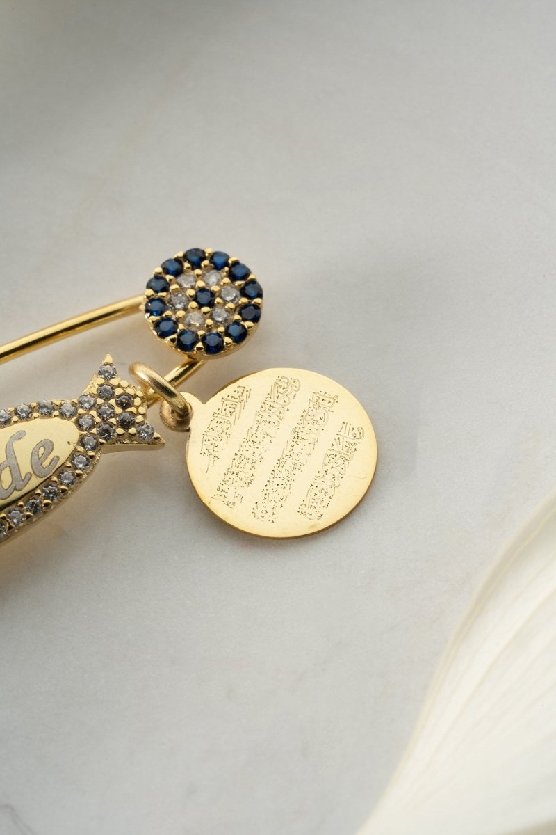Nereze | Personalized Pink Feet Islamic Motivated Ayatal Kursi Baby Pin with Name