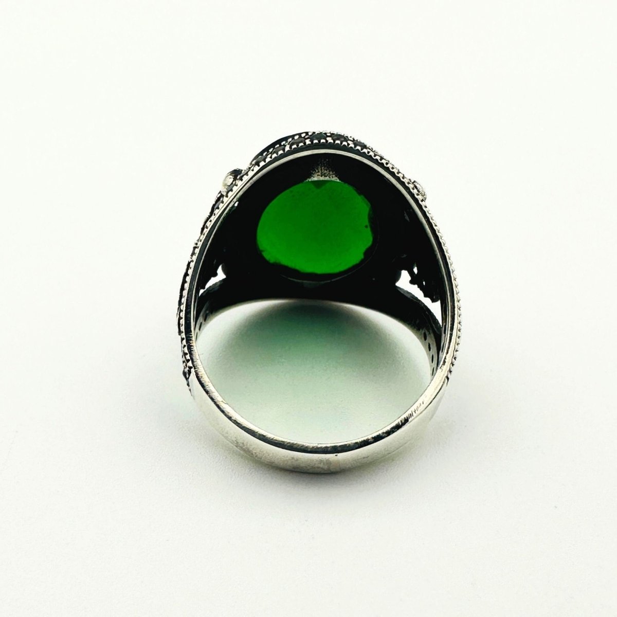 Discover the allure of our scorpion detailed silver men's ring. This Turkish handmade piece features a green emerald zircon stone, adding a touch of elegance and mystery. Whether it's a gift for a loved one or a personal indulgence, this ring is a symbol of craftsmanship and style. Elevate your accessory collection with this unique handmade item, meticulously crafted from high-quality sterling silver. Stand out with this exquisite scorpion detailed ring and enjoy the essence of individuality and sophistication in your style!
