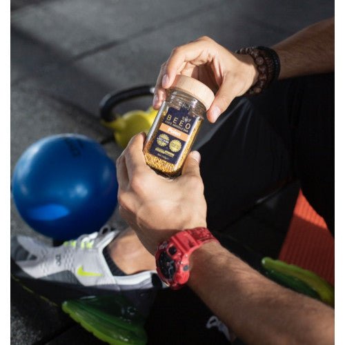 - 100% طبيعي: Bee'O Pollen عضوي، معتمد حلال، وخالٍ من الإضافات، المواد الحافظة، والكائنات المعدلة وراثيًا.