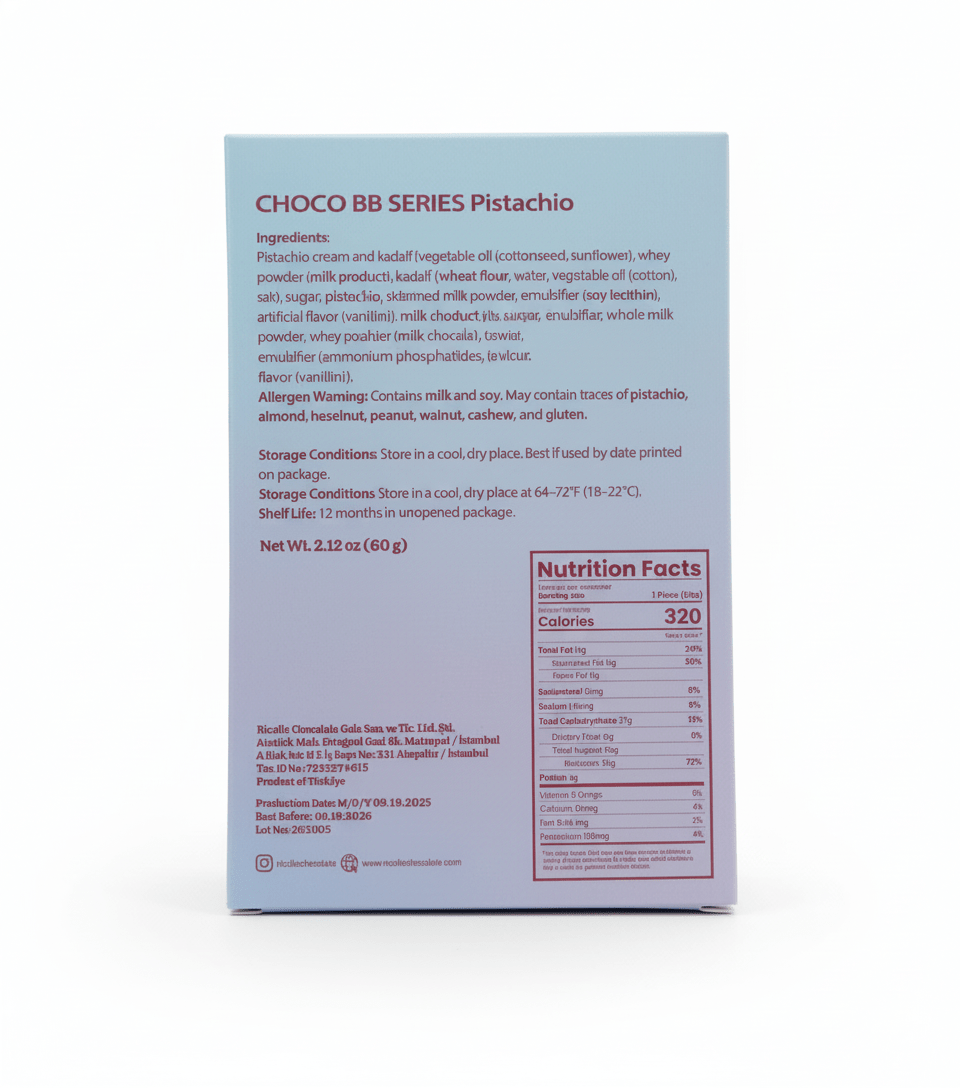 Ricolle Babbulu (BB) Series Premium Pistachio Kadaif Chocolate - 2.12oz (60g) - TryAladdin